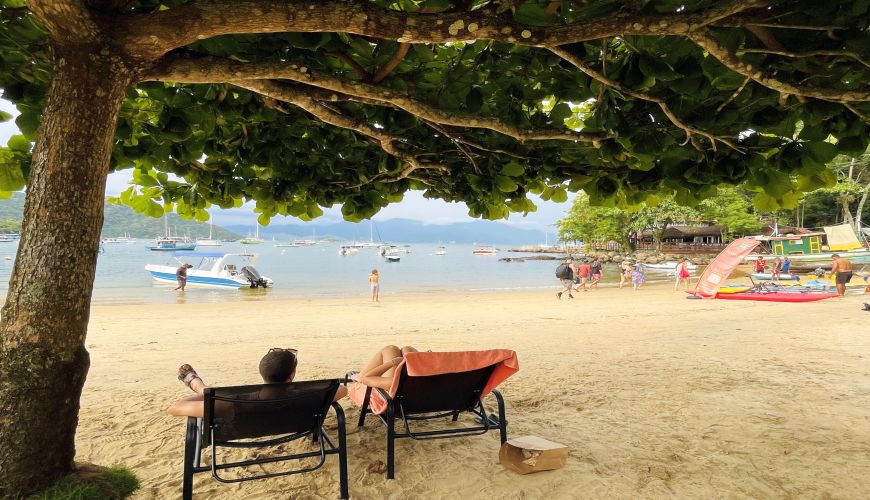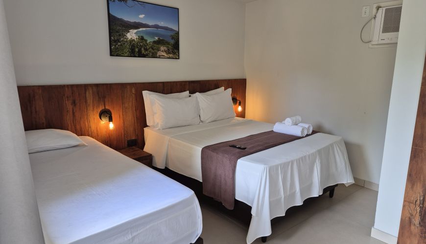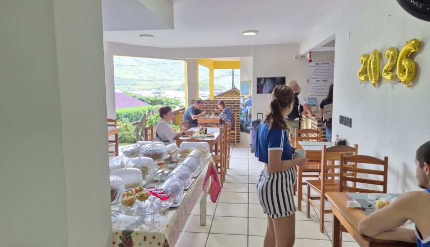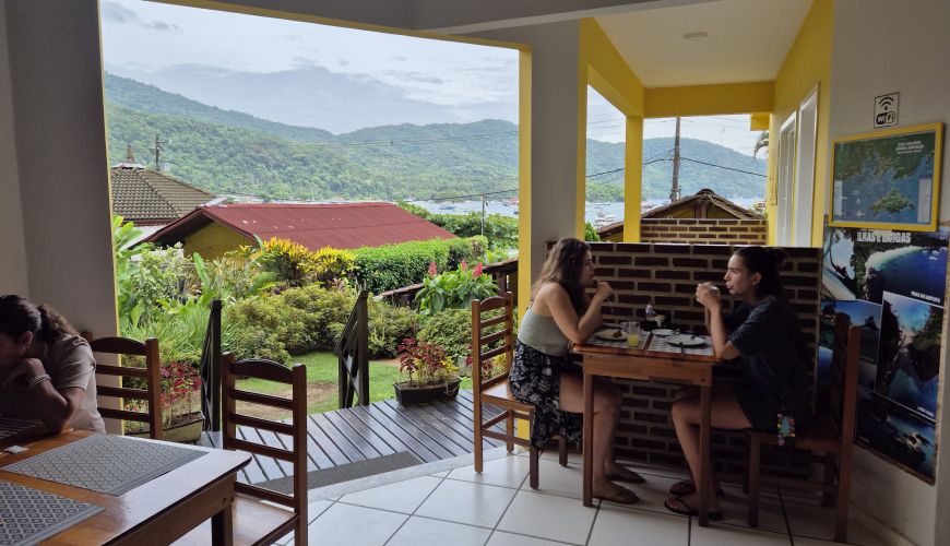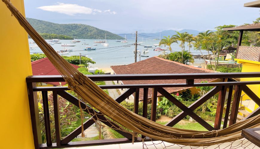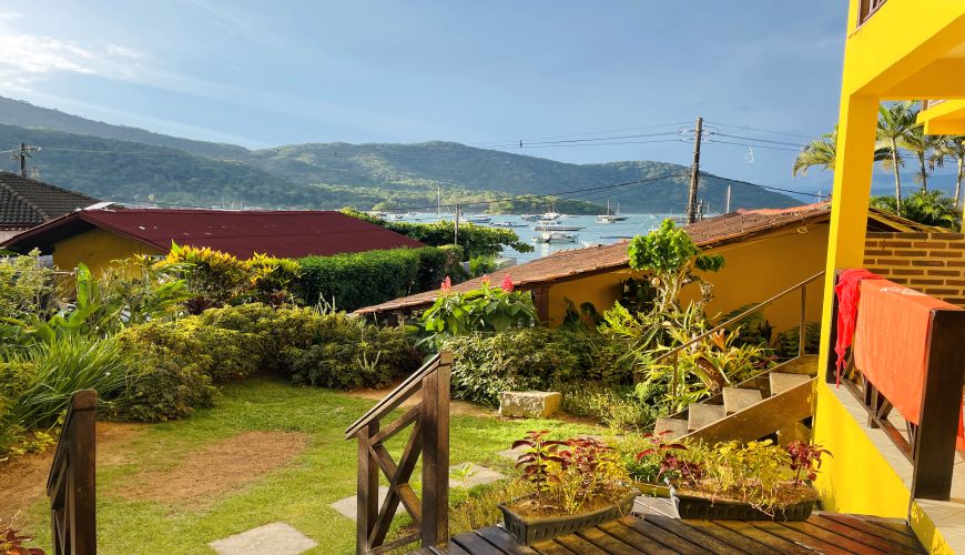 Die Pousada Porto Girassol ist eine charmante, kleine Unterkunft in direkter Strandlage im Herzen von Vila do Abraão auf Ilha Grande. Sie bietet eine entspannte Atmosphäre und klimatisierte Zimmer mit Bad, TV, Minibar sowie teilweise Balkon oder Terrasse. Kostenloses WLAN ist in der gesamten Pousada verfügbar. Morgens wird ein frisches Frühstück mit regionalen Produkten serviert. Dank der zentralen Lage sind Restaurants, Bars, Strände, Bootsausflüge und Wanderwege bequem zu Fuß erreichbar – ideal für einen erholsamen Inselaufenthalt.- Mit Frühstück