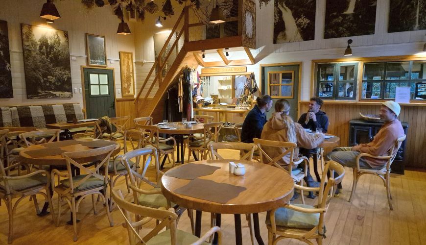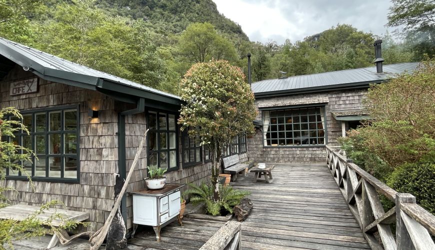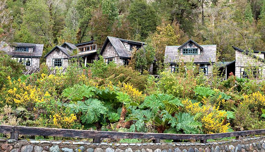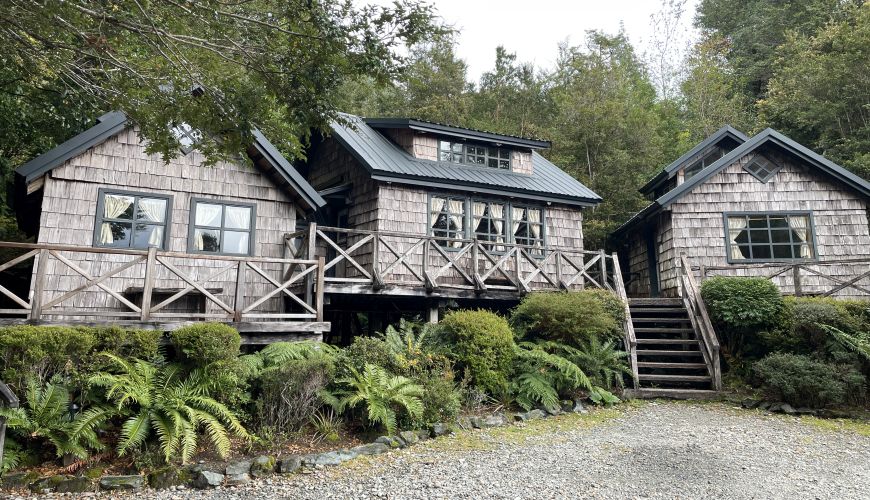 Die sieben Cabañas befinden sich direkt am Reñihué Fjord, des Gebietes Caleta Gonzalo und bieten einen wundervollen Blick auf den Fjord und die Landschaft. Obwohl die Fassade der Bungalows im lokalen Stil gehalten ist, präsentiert doch jeder einzelne ein individuelles Design. Einige der Bungalows verfügen über eine zweite Etage und können bis zu 5 Personen beherbergen. Das Frühstück gibt es im nahgelegenen Café. Das Besucherzentrum, ein Wanderweg sowie eine kleine Farm sind ebenfalls zu Fuß zu erreichen.- Mit Frühstück