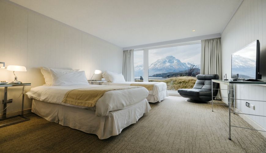 In schönster Lage direkt am Lago Grey befindet sich das gleichnamige Hotel Lago Grey. Es verfügt über 60 geräumige Zimmer, meist in Bungalows, einen Gemeinschaftsraum mit Panoramafenster, Restaurant, Bar und einen Weinkeller mit erlesenen chilenischen Weinen. Der 14 km entfernte Grey-Gletscher, den man vom Hotel aus sieht, kann von hier aus durch eine Bootsfahrt erreicht werden. Das Hotel gehört zu den schönsten Hotels im Paine-Nationalpark und ist eines der wenigen, die auch im patagonischen Winter (Juni-September) geöffnet haben.- Mit Frühstück
