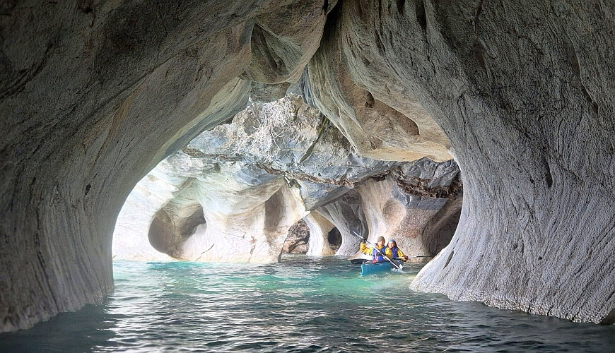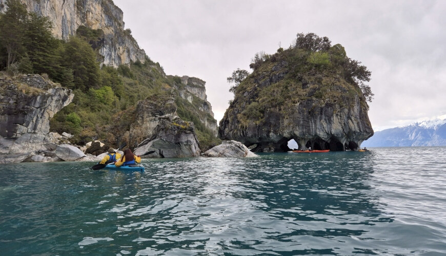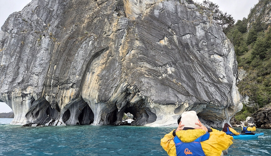 Mit dem Kajak lassen sich die Höhlen besonders eindrucksvoll erkunden: Man gleitet direkt zwischen den bizarren Felsformationen hindurch und kann die faszinierenden Muster und Farben des Marmors aus nächster Nähe bestaunen. Das Zusammenspiel von Licht, Wasser und Stein erzeugt dabei ein fast magisches Farbenspiel, das je nach Tageszeit und Wetter immer wieder anders wirkt. Die Tour wird in der Regel von erfahrenen Guides begleitet und ist auch für Anfänger gut geeignet.