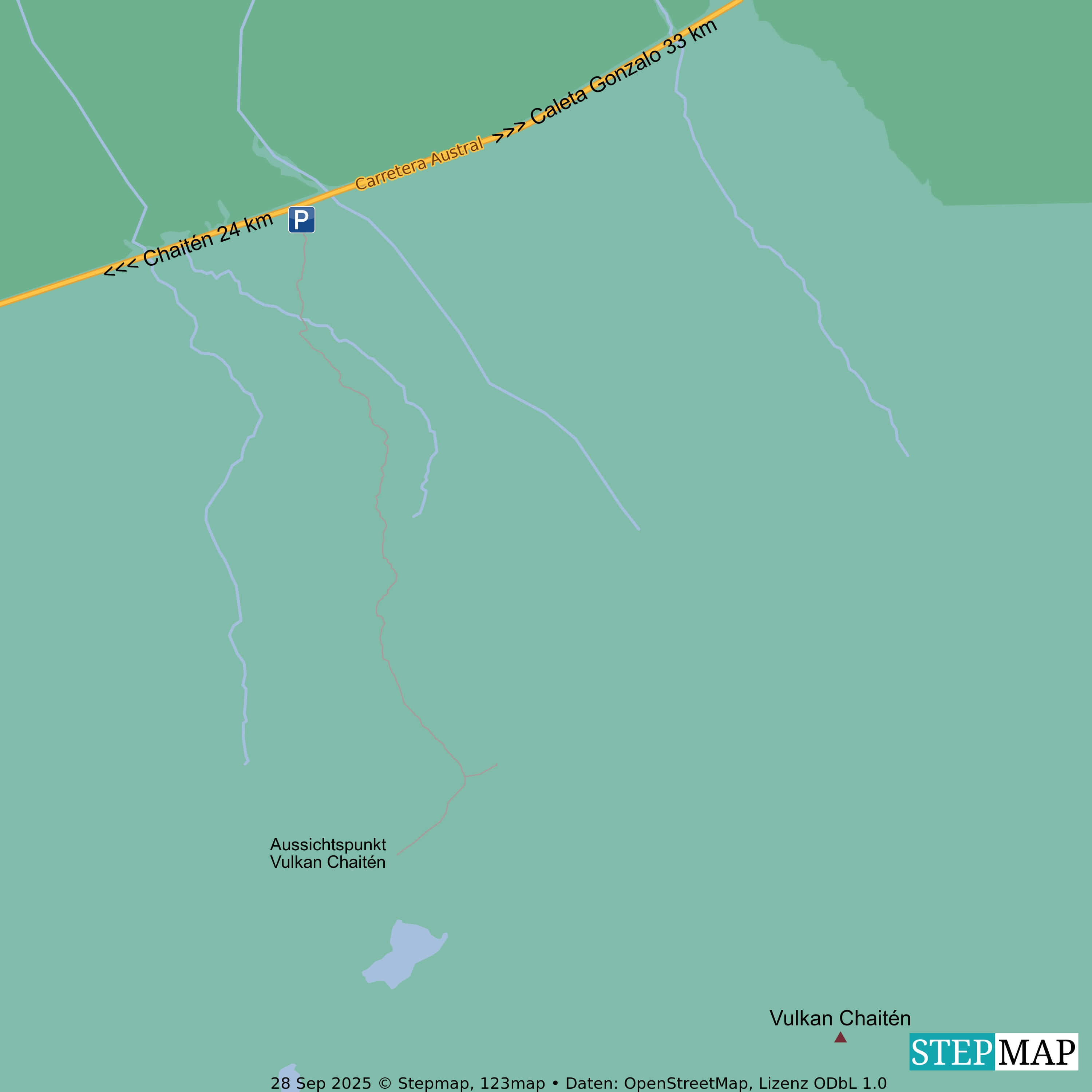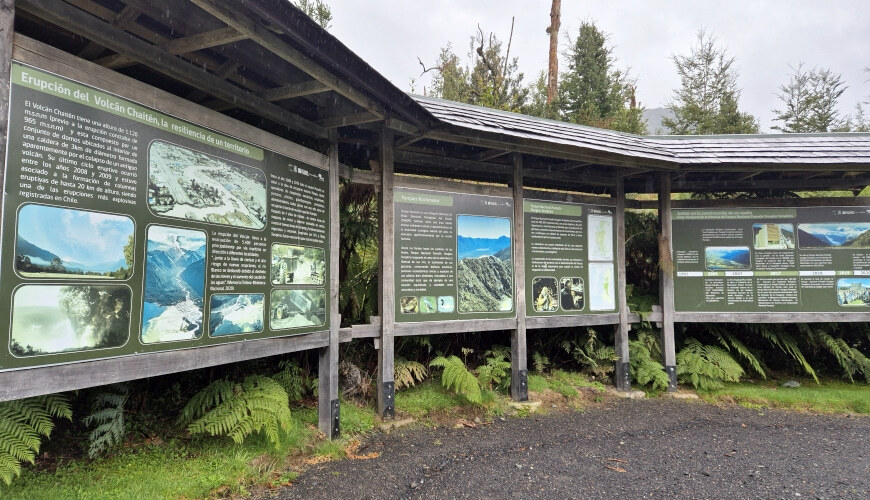 Ausgangspunkt für die Wanderung ist der Parkplatz an der Carretera Austral, zwischen Chaitén und Caleta Gonzalo. Am Parkplatz befinden sich Schautafeln, die den Ausbruch des Vulkans am 2. Mai 2008 und seine Folgen anschaulich erklären. Der Wanderweg beginnt direkt hier am Parkplatz und führt zunächst ebenerdig durch den Wald. Wenn Sie Glück haben, hören Sie den Gesang des kleinen Chucao auf ihrer rechten Seite. Das steht für ein gutes Omen. Erklingt der Gesang von links, ist es ein schlechtes Omen, sagt man zumindest. Zu Beginn der Wanderung können Sie den Vulkan nicht sehen, denn sie führt durch dichte Vegetation. Im weiteren Verlauf der Wanderung wird diese etwas schwieriger und führt bergauf, bis zum Kraterrand. Sie gelangen bei der Wanderung nicht auf den Gipfel, sondern bis zum Aussichtspunkt.
