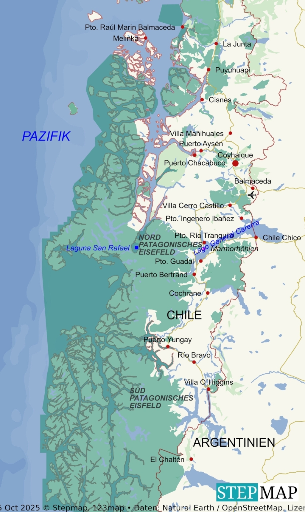 Große Teile der Region Aysén sind nur auf dem Luft- oder Wasserweg erreichbar. Die abenteuerlichen Landverbindungen gehen meist über Argentinien.