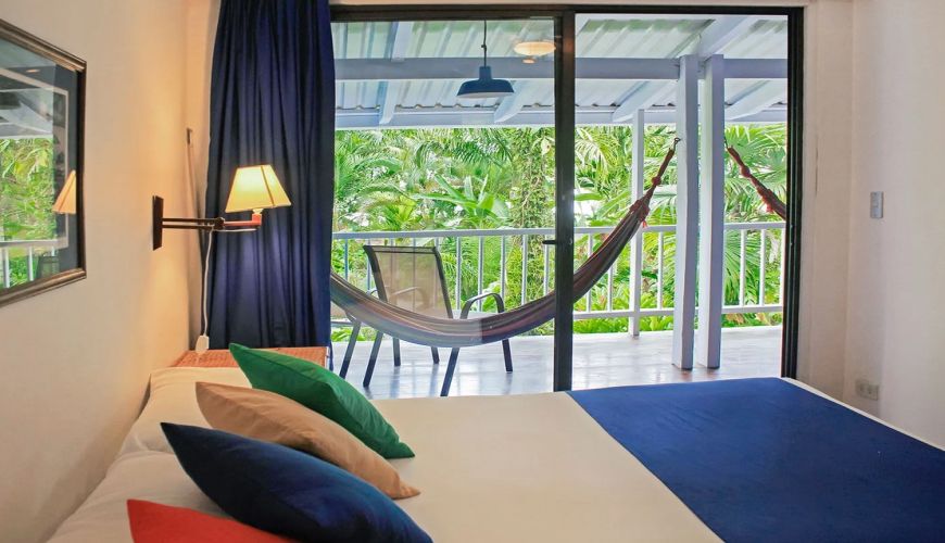 Die Villas del Caribe liegen an der Karibikküste Costa Ricas, etwa 5 km südlich vom lebhaften Zentrum Puerto Viejo de Talamanca. Eingebettet in dichten tropischen Regenwald direkt an der Playa Cocles, bieten die gepflegten Villen eine einfache, praktische Ausstattung mit Küchenzeile, Terrasse und WLAN. Nur wenige Gehminuten entfernt liegen weitere schöne Strände wie Playa Chiquita und Playa Punta Uva. Die ruhige Lage macht die Unterkunft ideal für Reisende, die das authentische karibische Leben und die Natur abseits großer Touristenströme erleben möchten.- Mit Frühstück