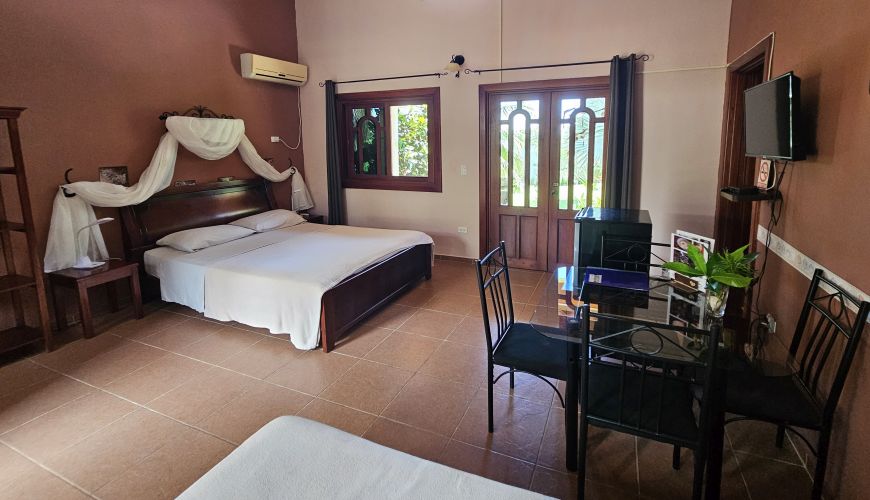 Die Finca Buena Vista liegt ruhig und etwas erhöht in den Hügeln oberhalb von Las Lajas in der Provinz Chiriquí. Durch ihre abgelegene, ländliche Lage bietet sie weite Ausblicke auf die umliegende Berg- und Tallandschaft. Die kleine Unterkunft wird von einem deutschen Besitzerpaar geführt und zeichnet sich durch eine persönliche, familiäre Atmosphäre aus. Insgesamt gilt die Finca als ruhiger Rückzugsort außerhalb des touristischen Trubels.- Mit Frühstück